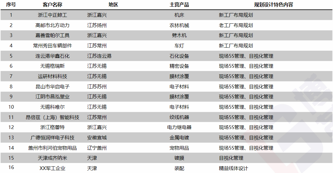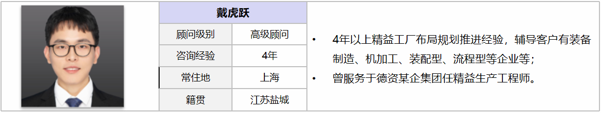 擅長業(yè)務(wù):新工廠布局規(guī)劃、精益布局與物流改善、整體倉儲規(guī)劃、IE改善手法、單元化生產(chǎn)與線平衡分析、精益生產(chǎn)成本降低、精益生產(chǎn)配送管理、精益物流-成套供應(yīng)物料模式、標(biāo)準(zhǔn)工時開發(fā)、現(xiàn)場6S改善、目視化提升、工廠園區(qū)目視化整體優(yōu)化;
