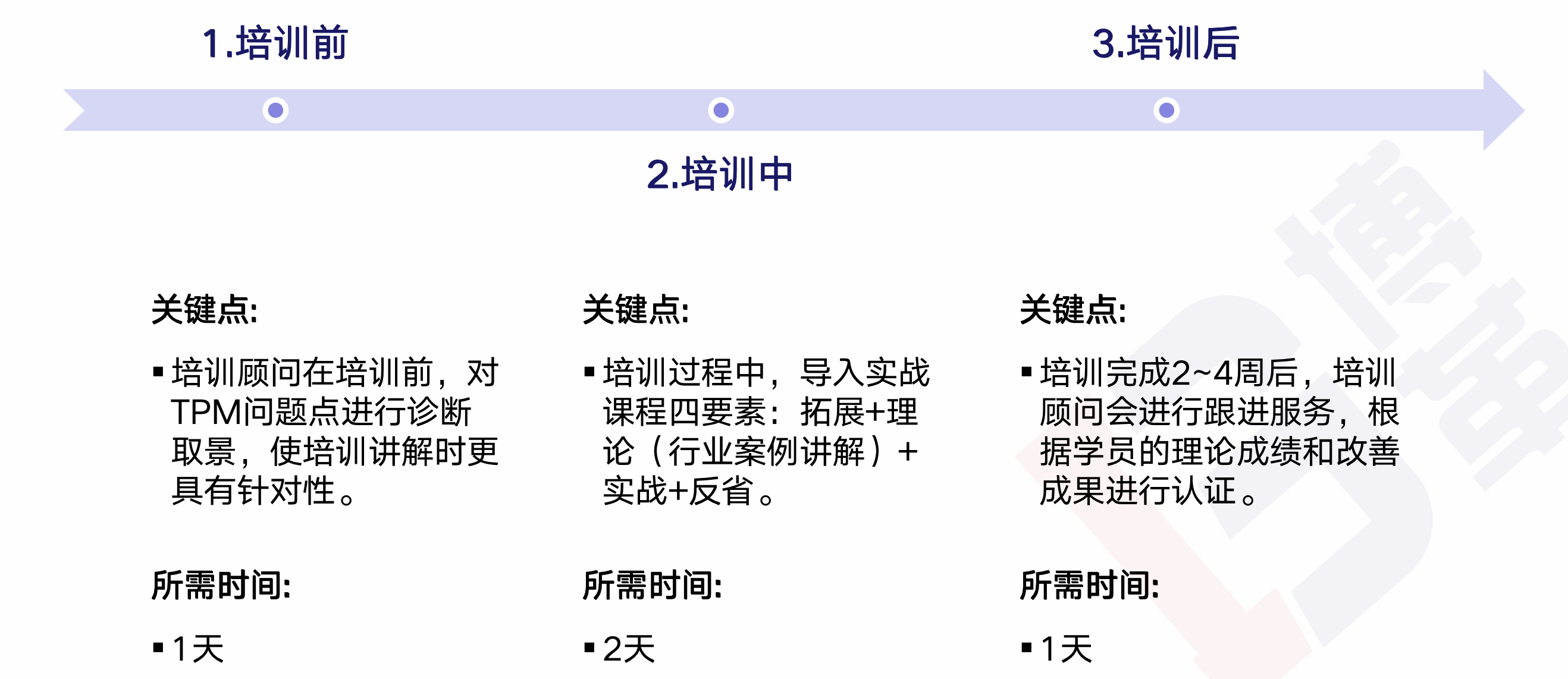 在精益管理的導入階段需要導入精益實戰培訓,并且要持續進行,形成公司的輪訓制度;每次培訓結束之后需制定下步的工作計劃,使精益實戰培訓閉環。