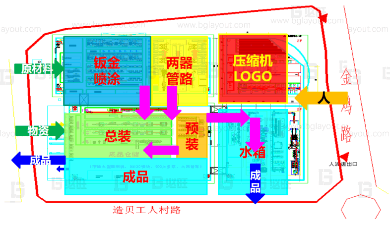 本規劃項目涉及對工廠進行整體布局規劃,規劃內容包含對車間進行智能精益布局、車間功能細化、倉庫規劃、物流及輔助設施規劃等服務內容,可滿足未來公司高速發展的需求。