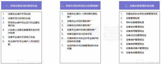 第四步完善自主維護認證體系,搭建可持續維持的自主維護現場。通過現場認證,員工能清晰感知什么才是做到位的,哪些地方可以再進一步優化,評分不是目的,完善自我認證體系才是最終目的。