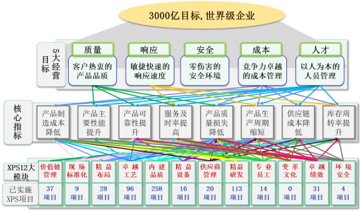 “XPS持續(xù)變革系統(tǒng)”是以集團及下屬企業(yè)戰(zhàn)略為導向,結合企業(yè)運營的具體情況,運用世界上最行之有效的績效改善工具和方法,幫助企業(yè)建立和完善高效的運營系統(tǒng)和模式,使企業(yè)在產品創(chuàng)新、流程創(chuàng)新、人才培養(yǎng)、利潤創(chuàng)新等方面的績效達到世界領先水平,并形成與企業(yè)自身文化相融合的持續(xù)改善文化,構筑企業(yè)的核心競爭力。