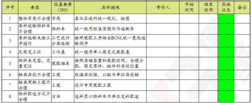●等待浪費:組件的安裝沒有按照定時定量的方式裝配、裝配好沒有放在固定區(qū)域,造成等待