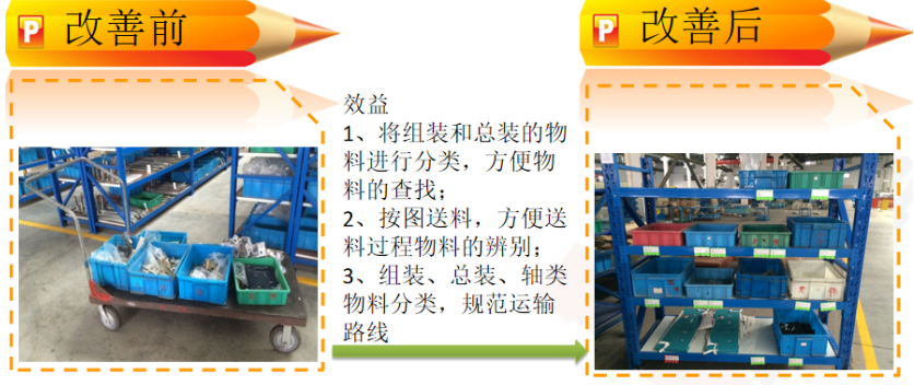 ●搬運浪費:物料運輸過程中,送料員用平板車,需多批次運輸,且需將物料搬運至地面;裝配員再將物料搬運至裝配區(qū);