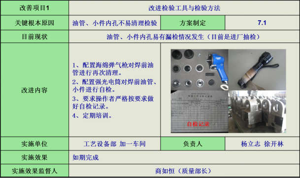 4)油管、小件檢驗,針對油管、小件內孔不易清理檢驗問題,改進檢驗工具和檢驗方法,避免漏檢情況發生。