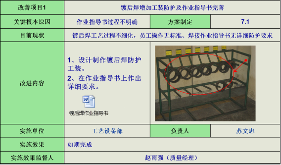 6)鍍后焊防護,針對鍍后焊作業指導書不明確問題,增加鍍后焊工裝防護,并完善作業指導書。