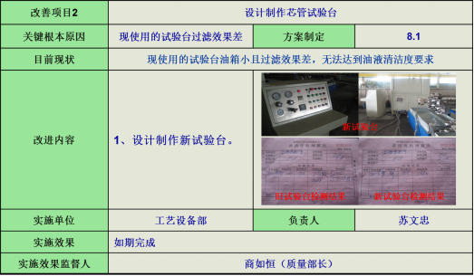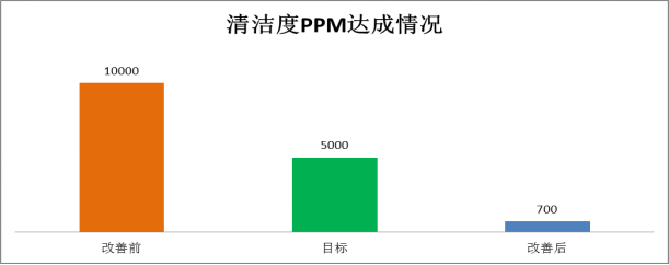 1.項目取得的效果:改善前:清潔度問題(焊后車鐵屑雜質、芯管組焊焊瘤、鍍后焊焊瘤、芯管試驗油液污染、鍍后去堵鐵屑)不良率高達10000PPM,經過項目改善,為700PPM,合計年收益約為24萬元達成項目目標。