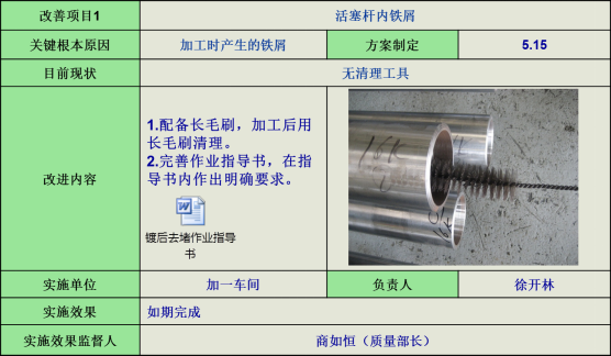 9)活塞桿內鐵屑,針對加工時產生的鐵屑問題,著重清理活塞桿內鐵屑。