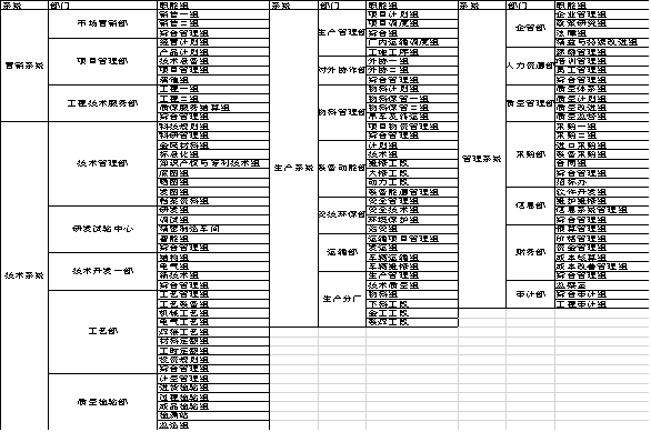 1.4 關(guān)鍵部門的組織職責(zé)梳理,裝備制造企業(yè)通常分為營銷,技術(shù),生產(chǎn),管理四個系統(tǒng),重新梳理各部門組織職責(zé)。