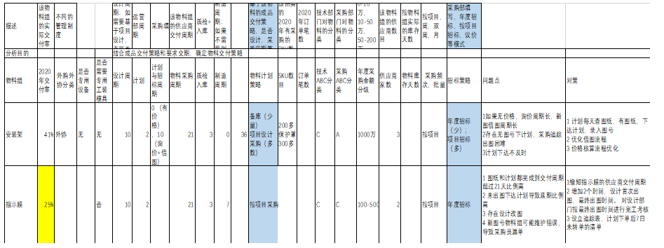 4.2 按物料類別分析交付率與庫存,改進機會確定,分析每一類物料的交付率,庫存與改善計劃