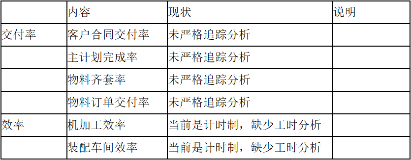 咨詢顧問根據(jù)客戶需求,在現(xiàn)場對相關(guān)部門或業(yè)務(wù)進行了詳細的訪談,收集了詳細的數(shù)據(jù),并對相關(guān)描述與數(shù)據(jù)進行分析判斷,得出制約交付與庫存提升的關(guān)鍵問題,主要包括: