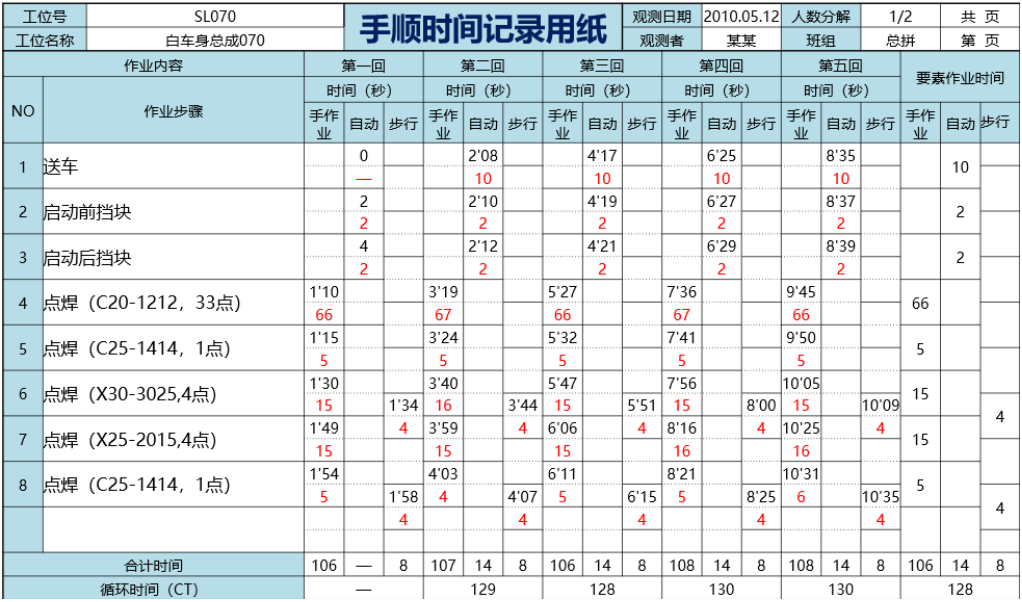 (1)根據現有日產量,確定各條生產線的改善目標,重新制定新的標準工時TT