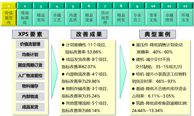 通過以上一系列的持續(xù)改善和推進(jìn),為A集團(tuán)和下屬分子公司,培養(yǎng)一批持續(xù)變革的革新專家,一批專業(yè)領(lǐng)域的內(nèi)部顧問,將XPS推進(jìn)實(shí)施的成果標(biāo)準(zhǔn)化、模式化、信息化,并沉淀為企業(yè)的核心競(jìng)爭(zhēng)力。